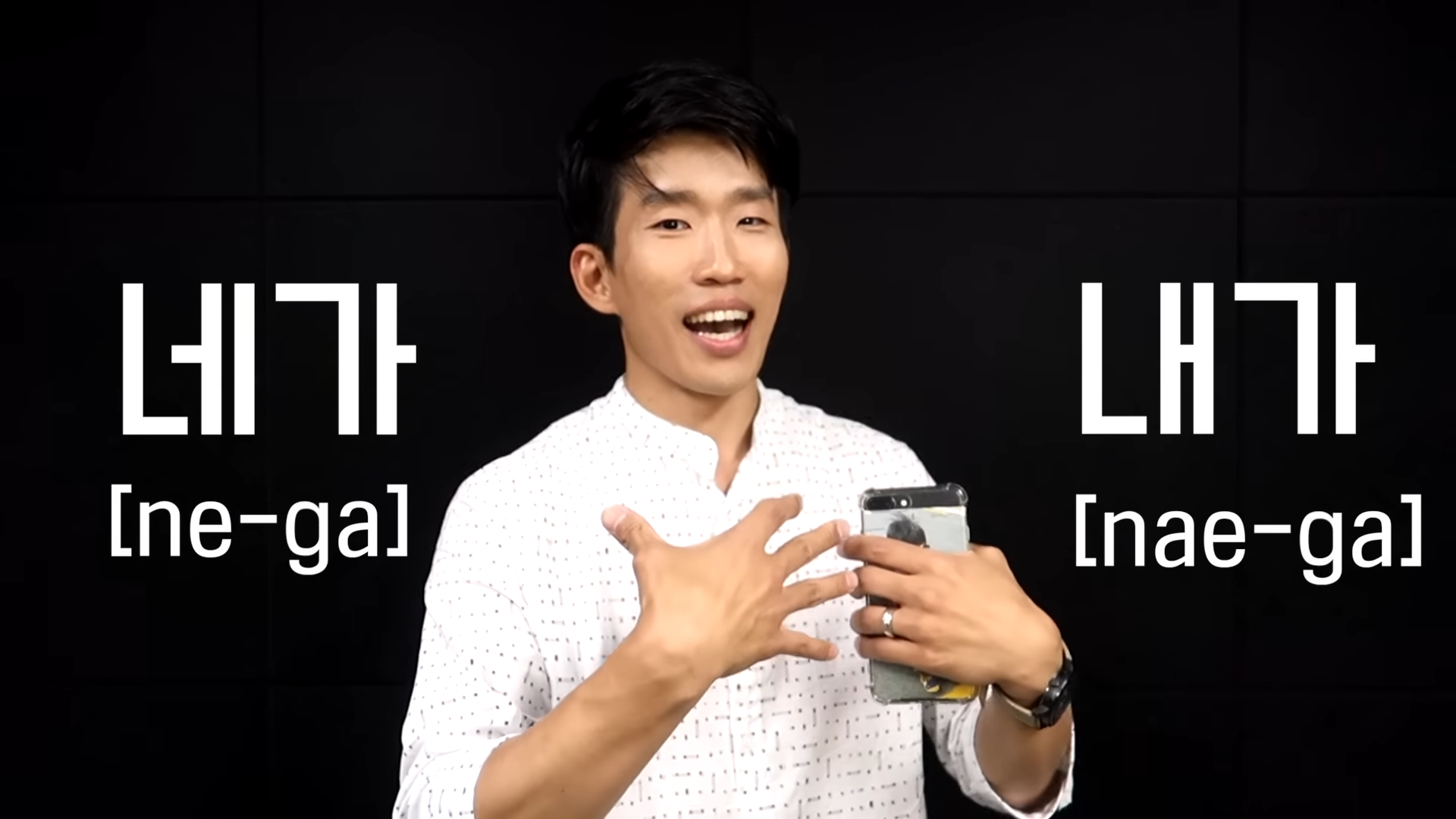 The next question asks about the difference between “니가" (ni-ga) and "네가" (ne-ga) when both are being used. The reason for this is that the colloquial use of the word "네가" (ne-ga) meaning “you” has shifted the pronunciation slightly.