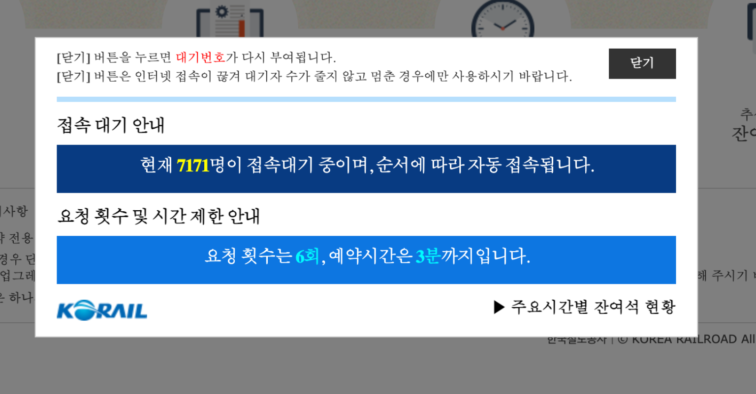 And the competition for train tickets during Chuseok? Still pretty intense! There are designated dates and hours for train tickets for this holiday, and just look at the number of people who were waiting ahead of me. I clicked on the “Reserve Tickets” button 0.08 seconds after it became available. More than 7,000 people within 0.08 seconds!