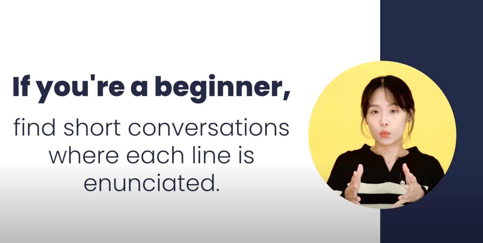 If you’re a beginner learning Korean, choose content that enunciates each word well, and we suggest slowing the playback speed as you listen. For beginners, try to follow our previous method: as you listen to media, only focus on the intonation and ignore the meaning or words directly.