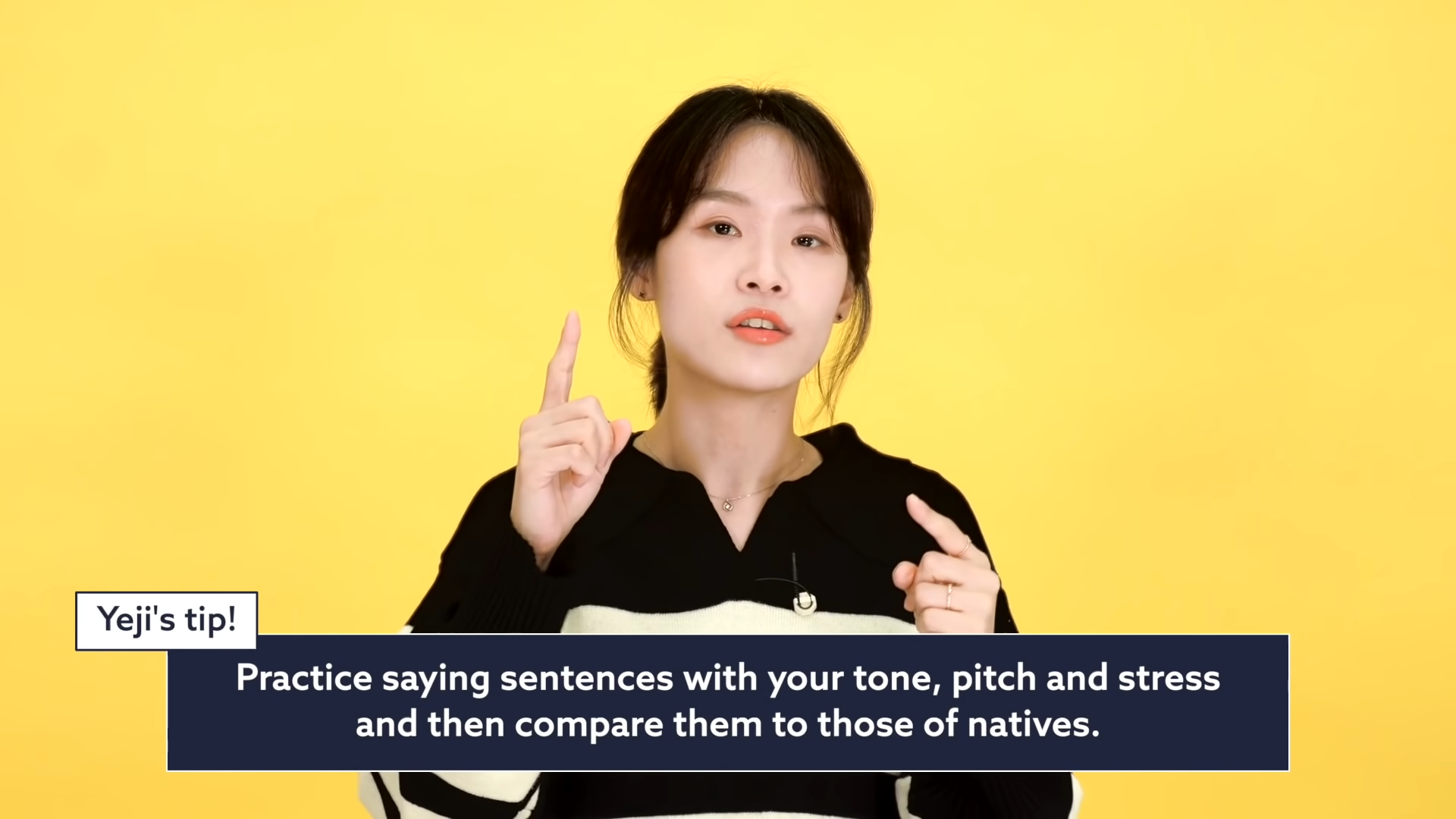 A final tip for improving your intonation is comparing your speech pattern to the native speakers you are listening to for practice. Notice the sentence they are saying and practice saying it aloud before you hear it spoken naturally.