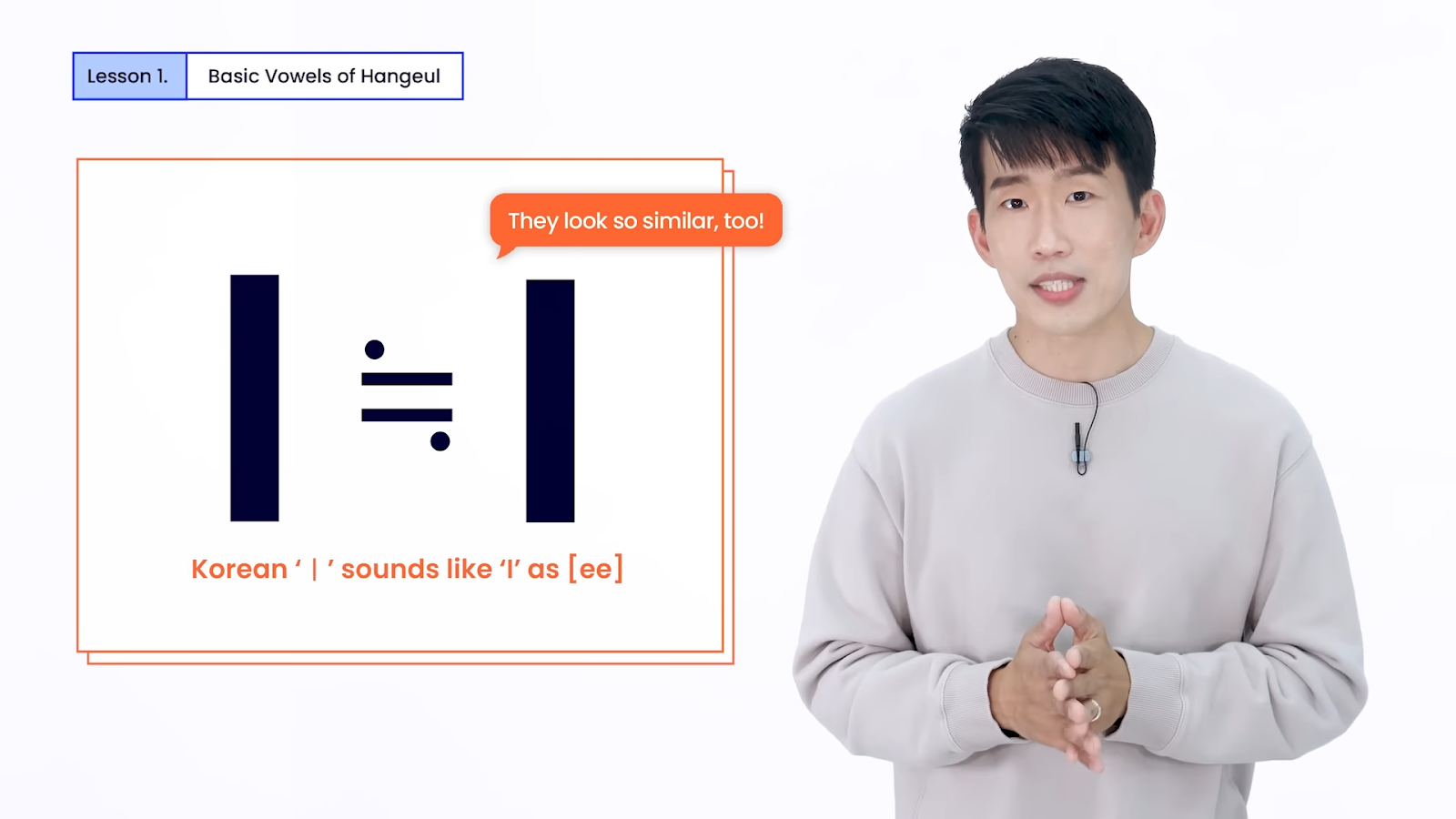 The next basic vowel is “ㅣ” which makes a sound similar to “eee.”